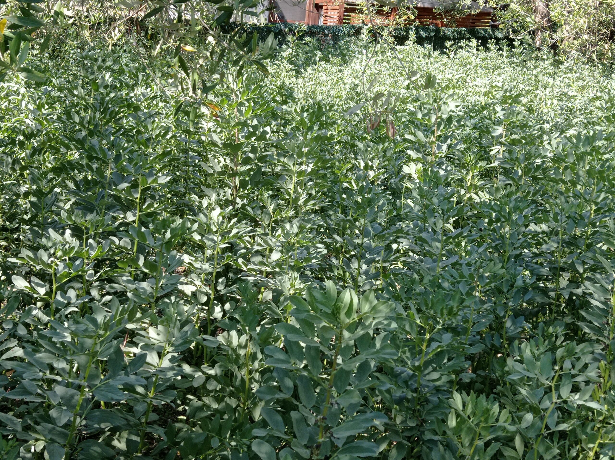 Frutteto: Seminare sovescio di favino o altre leguminose come i trifogli nelle interfila.