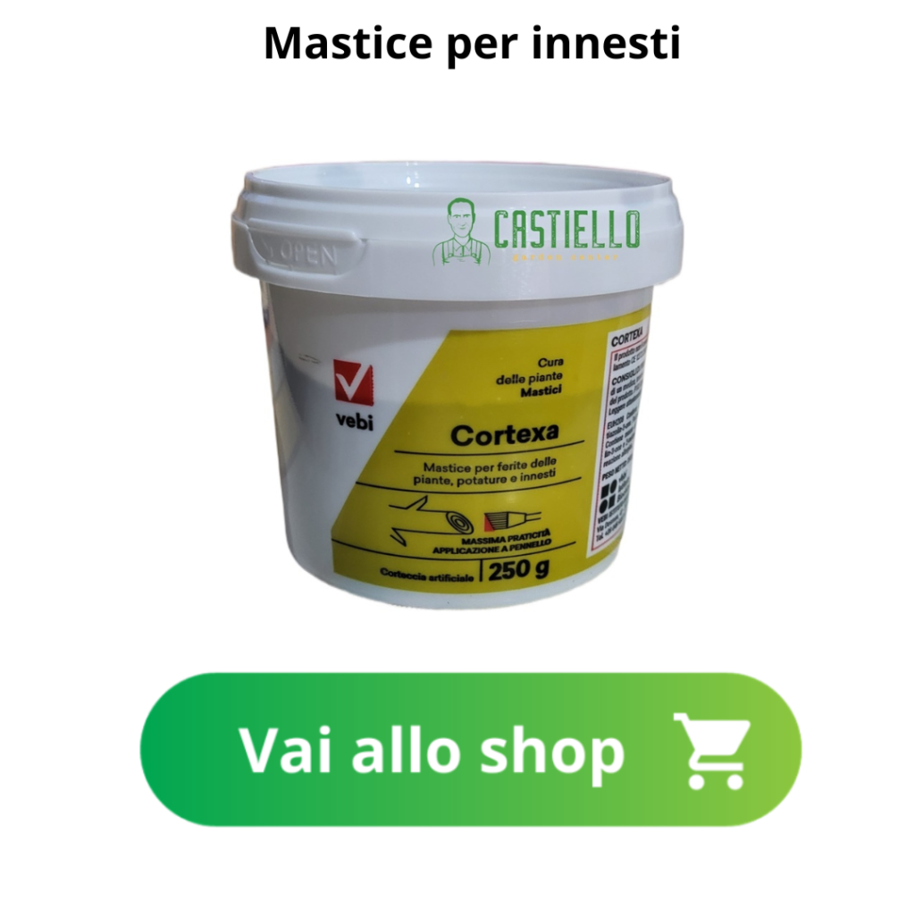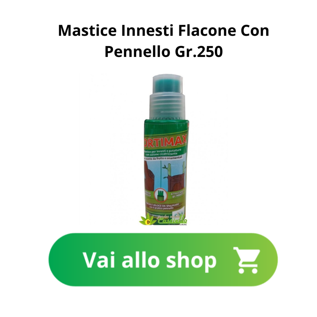- Se si devono effettuare tagli di rinnovo, cioè togliere rami rimasti troppo lontani dal tronco senza branche, in questi casi è opportuno inclinare il taglio sempre verso l’esterno del tronco e disinfettare e chiudere il taglio con un mastice addizionato a rame.