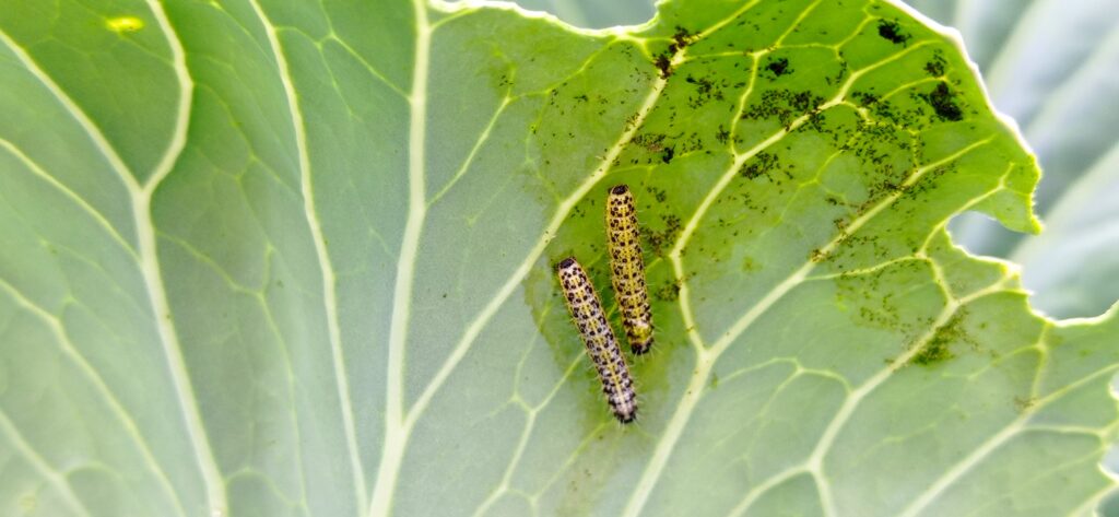 E’ una farfalla dalle ali bianche a macchioline nere e un’apertura alare di 40-60 mm. Le uova oblunghe, a torricella, sono color giallo-oro. Le larve, lunghe circa 45 mm, sono di colore verde-azzurro o giallo-verdi con bande laterali gialle, ornate da puntini e setole nere, ed hanno il capo nero. La pupa è verdastra o gialla. La piccola pieride del cavolo (Pieris rapae) ha un disegno simile, ma un’apertura alare di soli 40 mm; le larve sono di color verde smorto con bande longitudinali poco marcate. La cavolaia sfarfalla da aprile a giugno, da metà luglio a fine agosto e, quando la stagione si mantiene buona, anche a settembre e ottobre. Durante la prima epoca di sfarfallamento (da aprile a giugno), questo parassita reca danno alle crucifere selvatiche che fioriscono in quell’epoca; solo più tardi, in luglio e agosto, e poi ancora in autunno, infesta cavoli, crescione, rafano, colza e violacciocca. Per impuparsi, le colonie di bruchi migrano spesso molto lontano, su recinti, pareti, arbusti legnosi ed altri luoghi protetti. I bruchi divorano le foglie fino alle nervature. La piccola cavolaia può avere fino a 12 generazione l’anno. Anch’essa divora i cavoli insinuandosi all’interno delle “teste”. Nemici naturali della cavolaia sono gli uccelli e l’Aphanteles glomeratus, un imenottero braconide che parassitizza le larve.