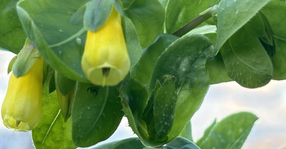 E’ facilmente riconoscibile per alcuni specifici caratteri morfologici, tra cui l’aspetto glaucescente (grigio-verdastro) e la presenza di foglie ellittiche (7-15x 30-60mm) con la pagina superiore ricoperta di tubercoli biancastri e margine ciliato. I fiori sono di forma tubolosa, muniti, di corolle gialle lunghe circa 2 cm , ripiegate verso il basso con un anello purpureo alla base. Il termine Cerinte deriva dal greco Keros,”cera” e anthos, “fiore”, con riferimento al colore e alla forma delle corolle che richiamano dei piccoli ceri. Tra i suoi nomi più popolari figura quello di “succiamele” che trae ispirazione dall’usanza di schiacciare tra i denti i fiori per il loro gradevole sapore mielato.