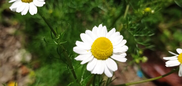 La camomilla è una delle erbe più conosciute e utilizzate al mondo. Con foglie bipennate divise in lacinie e fiori raccolti in capolini di colore giallo al centro e con petali bianchi attorno, questa pianta annuale dal caratteristico profumo aromatico ha fusto eretto, glabro, ramificato e raggiunge anche i 60 centimetri d’altezza