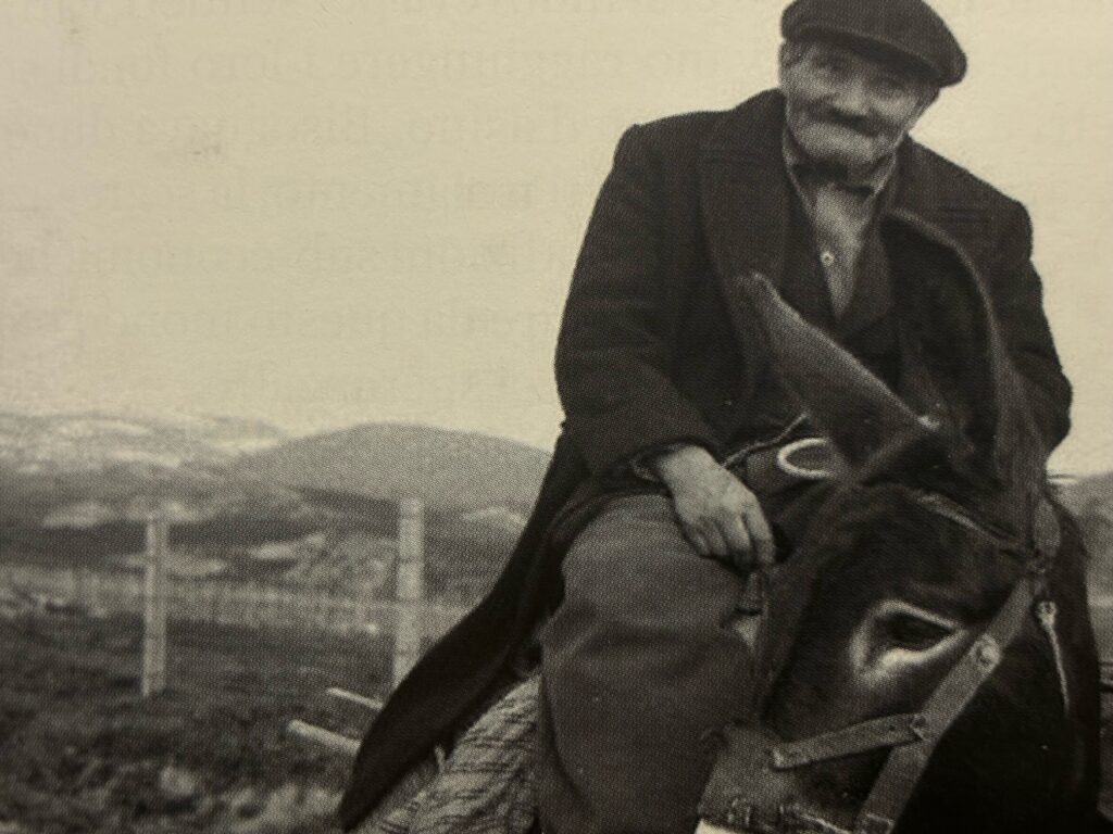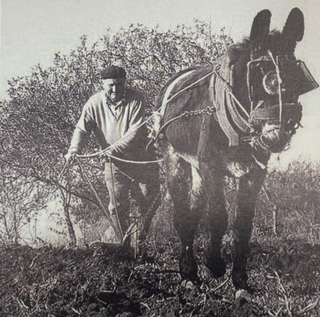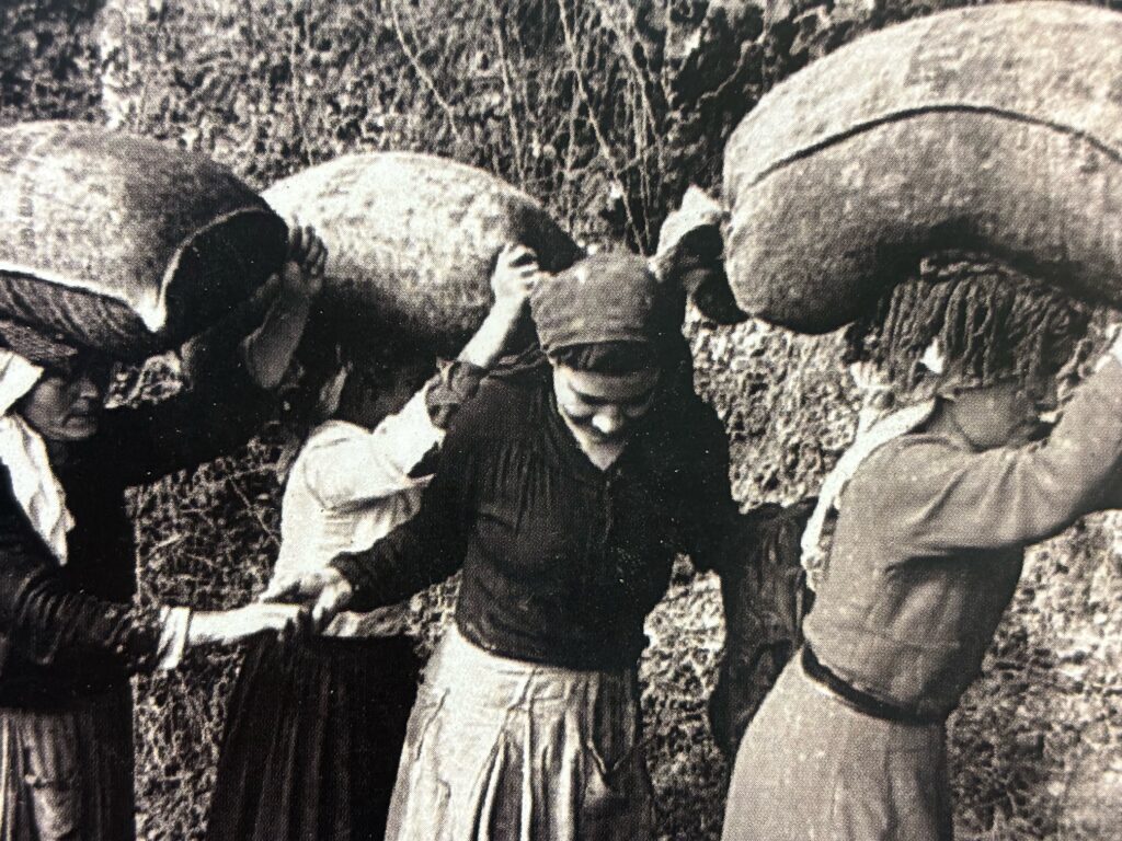 Come si può immaginare, le strade mulattiere venivano percorse a piedi e le terre venivano zappate a mano. Non essendoci collegamenti idrici, anche l’acqua, utile per l’irrigazione, veniva trasportata dalle sorgente a mano o attraverso l’aiuto degli animali. Le colture venivano prodotte e consumate in base ai periodi e alle stagionalità. Alla sera i contadini tornavano a casa, caricando sui loro animali il raccolto, l’acqua e la legna.